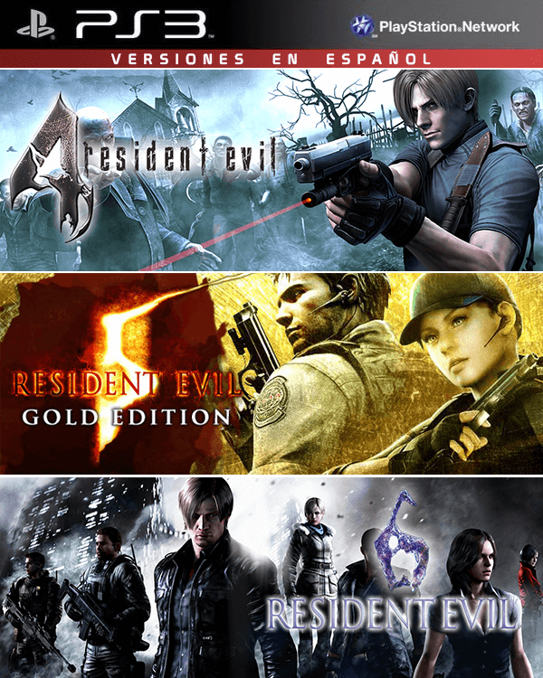 3 juegos en 1 Resident Evil 4 Mas RESIDENT EVIL 5 GOLD EDITION Mas RESIDENT EVIL 6